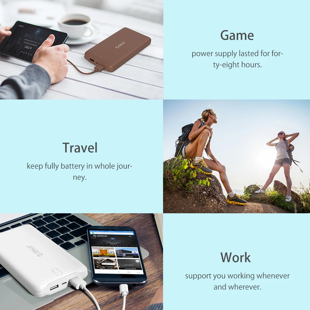 ORICO 10000mAh Power Bank For Travel Slim Thin Powerbank USB Type C External Battery For The Phone Portable Charger For Xiaomi : Click Here